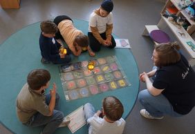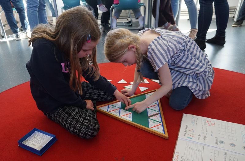 Präsentiert wurden u.a. Ausschnitte aus dem Deutsch- und Matheunterricht, das Arbeiten mit bienenförmigen Robotern, den Bee Bots, oder in der Halle das Frühradfahren. In Augenschein nehmen konnte man auch eine neue Bücherei, in der die Kinder in Kürze Bücher ausleihen können.